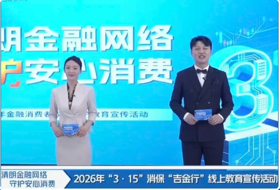 3月13日,吉林金融监管局聚焦“清朗金融网络 守护安心消费”主题,指导吉林省银行业协会、保险行业协会、交通银行吉林省分行等单位,线上开展2026年“3·15”消保“吉金行”金融消费者权益保护教育宣传活动。本次线上活动以权威发布、实地连线、消保IP展示、专家访谈等多元形式,打造沉浸式、互动式金融知识课堂,吸引5000余名观众在线参与,收获2.7万余次点赞,全面传递金融正能量,切实守护群众金融消费安全。